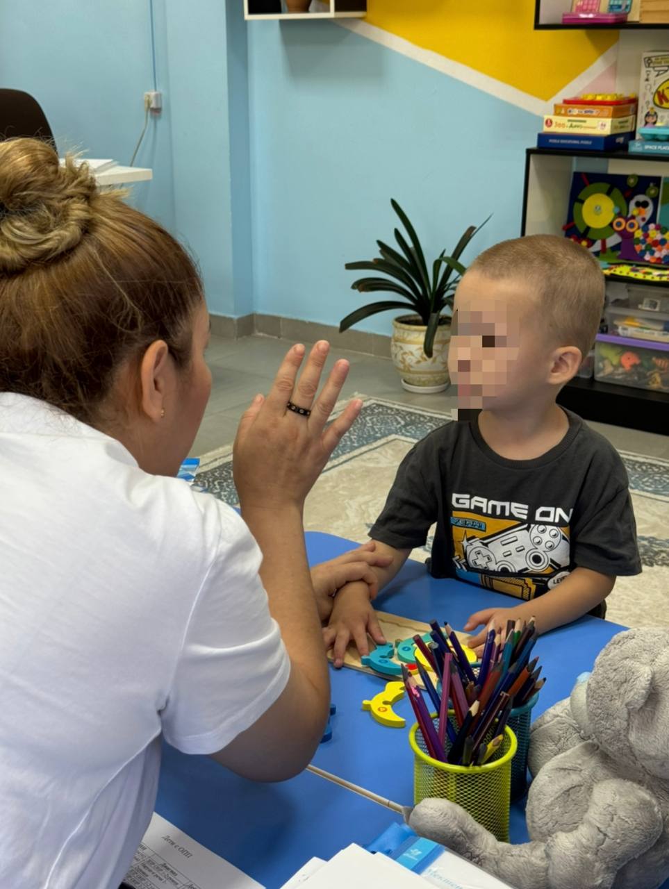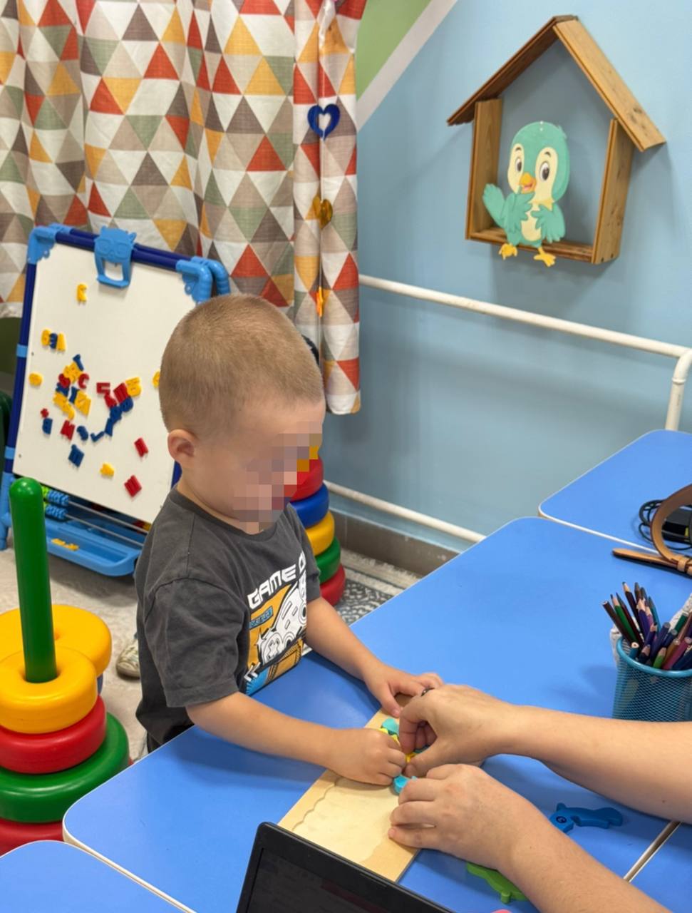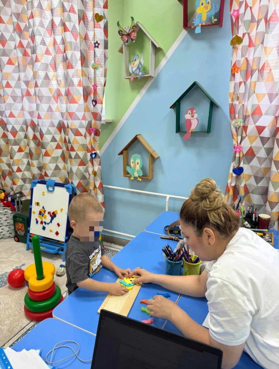 Балабақшада дефектолог пен психолог мамандарының балалармен жеке жұмысы.